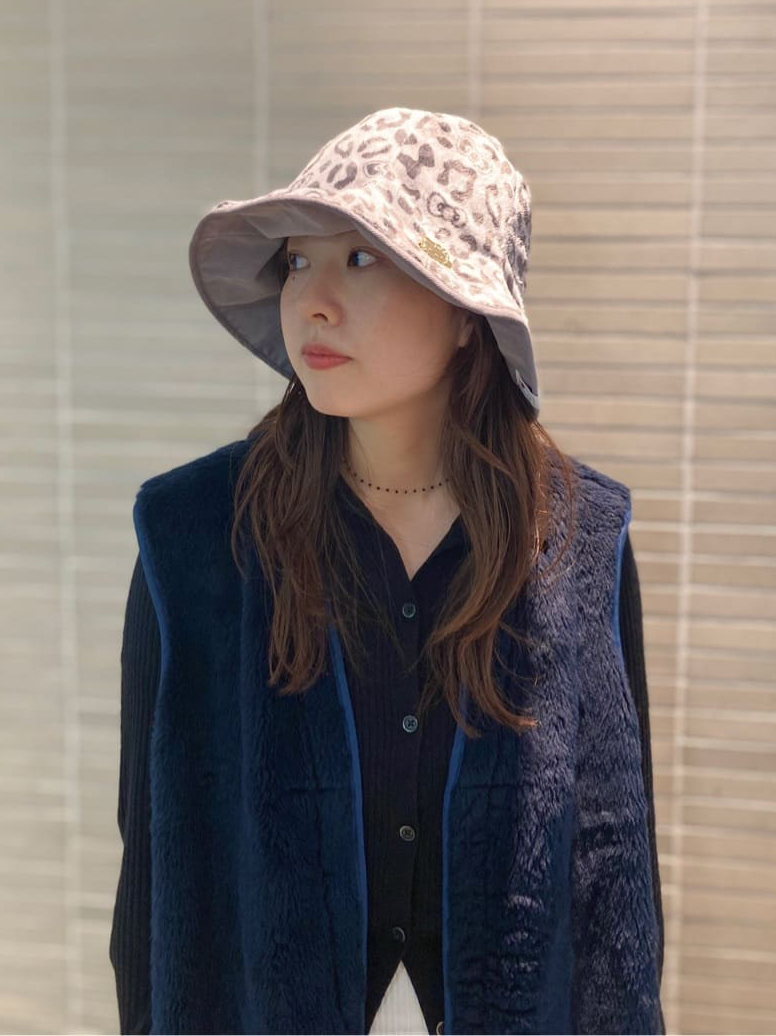 ハローキティのグッズの中で人気デザインの1つであるヒョウ柄を、オリジナルの総柄生地にアップデート。シーンや気分に合わせて使い分けられる、リバーシブルのチューリップハットに仕上げました。さりげなく散りばめられたハローキティのモチーフで、さらに気分をアップ!