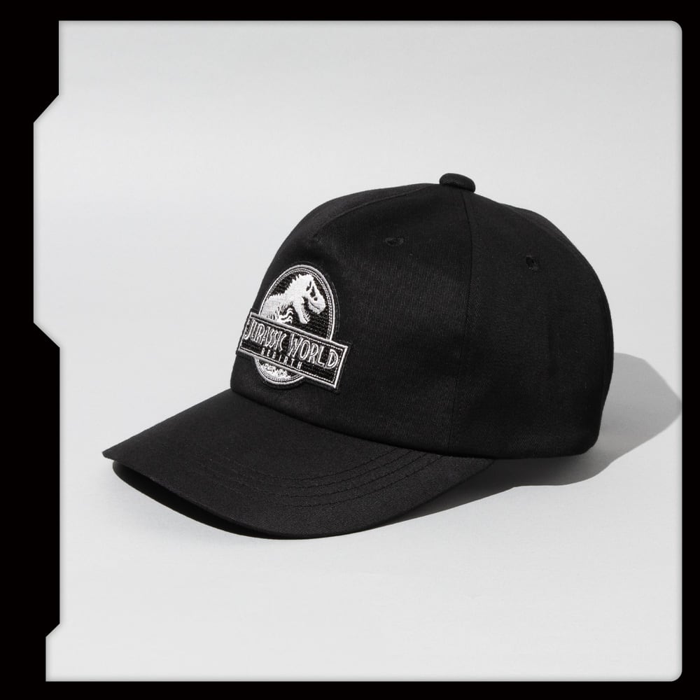 『ジュラシック・ワールド/復活の大地』のロゴキャップ。立体的で精緻な刺繍ワッペンと適度な厚みのツイル生地、シリーズを通してのアイコンであるT-レックスのロゴマークを刻印したステンレスパーツで、カジュアルさの中にクラス感のあるアイテムに仕上げています。