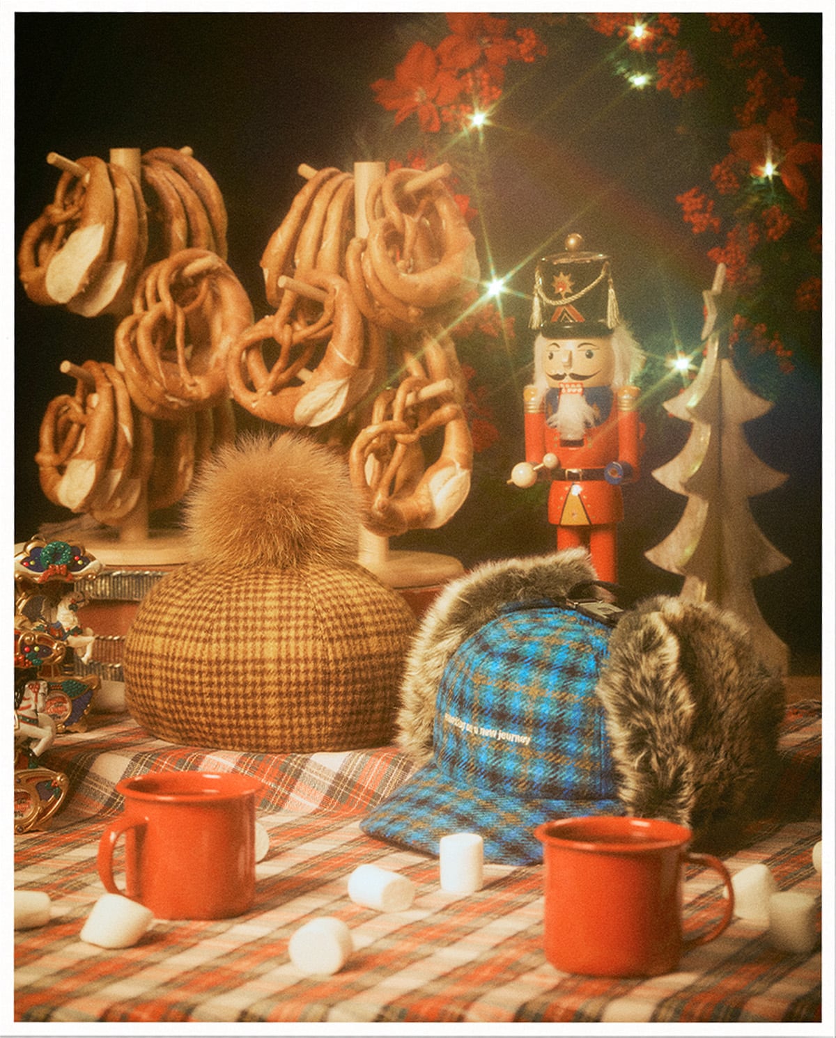 Checkered and tweed hats, perfect for winter streetscapes, lift your spirits.