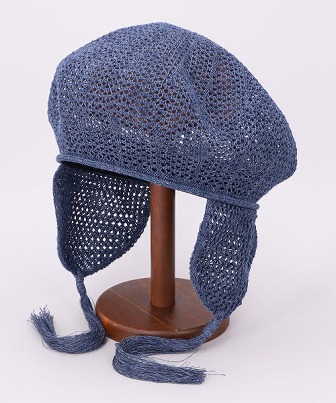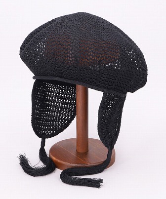 フラップ付きのざっくり編みベレー。