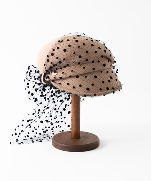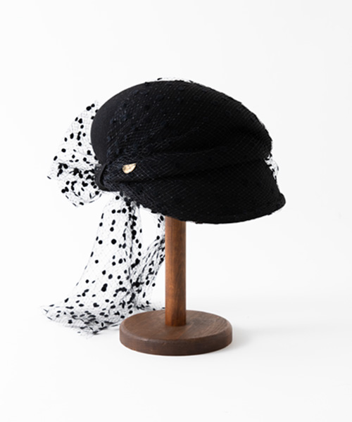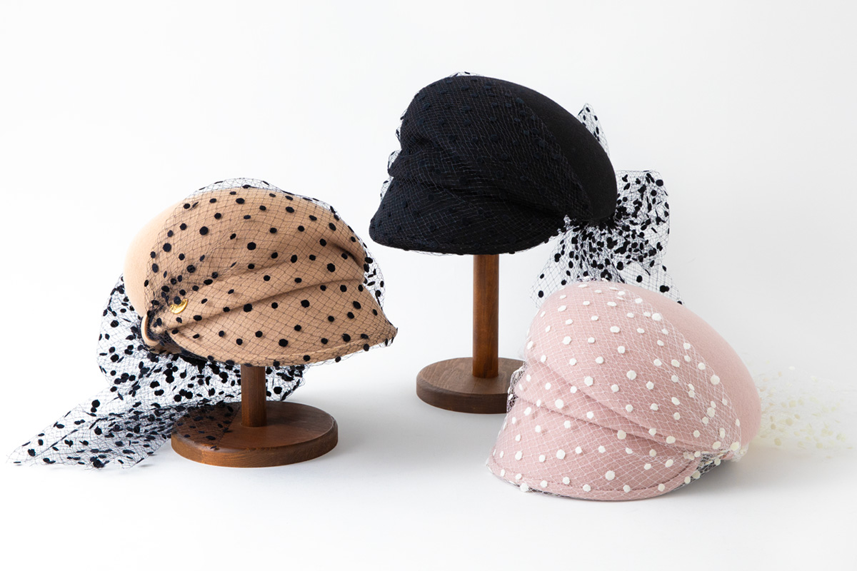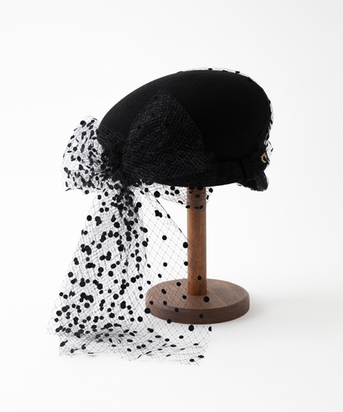 定番の型をベースに、エレガントなチュールリボンをあしらった特別仕様のキャスケット。リボンの取り外しが可能で、コーディネートに合わせて2WAYでお楽しみいただけます。