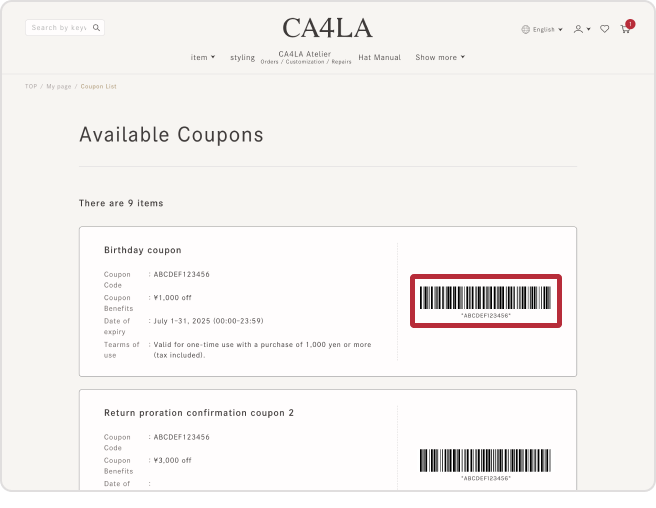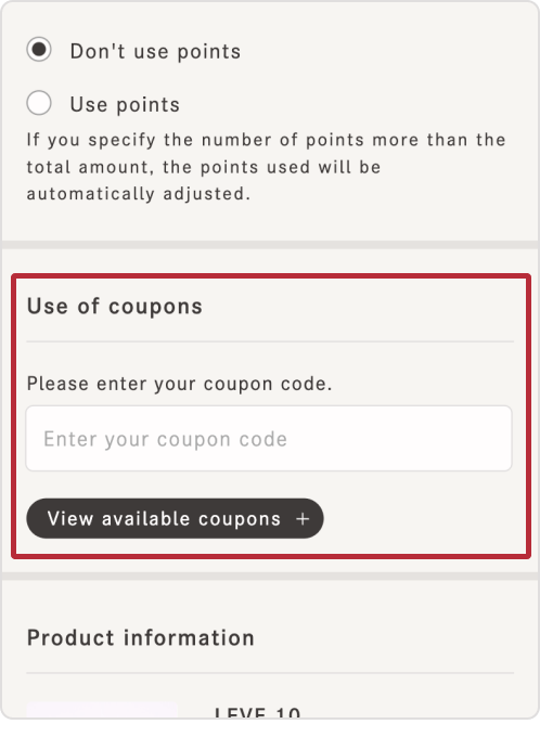 If you purchase a product from the CA4LA ONLINE SHOP, points will be added on the "date of product shipment." Please check your points at the top of your My Page or in "Point History."Using points