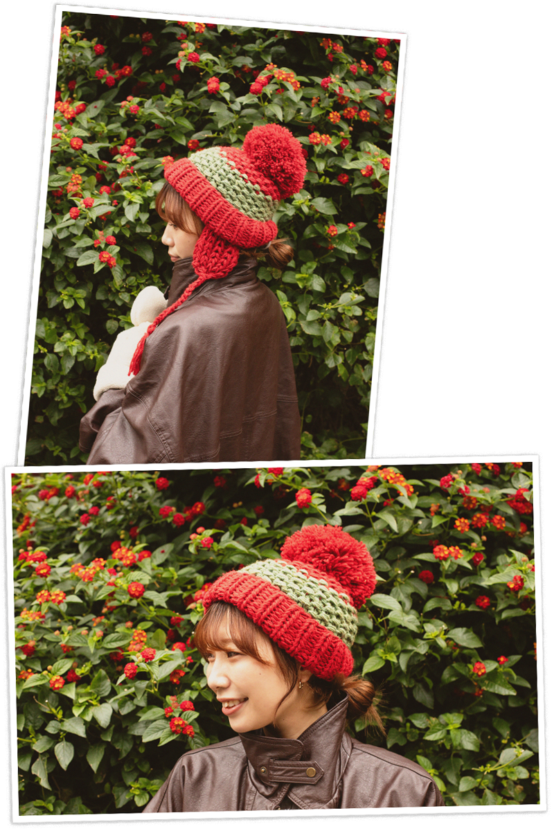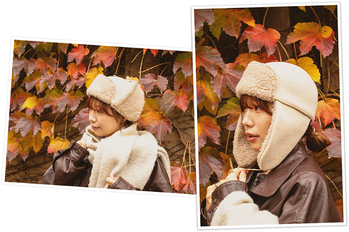 冬の定番のニットキャップも、この時期は防寒にぴったりのイヤーフラップ付きがおすすめ!シーンに合わせてフラップを内側にしまえば、すっきりとしたシルエットも楽しめます。