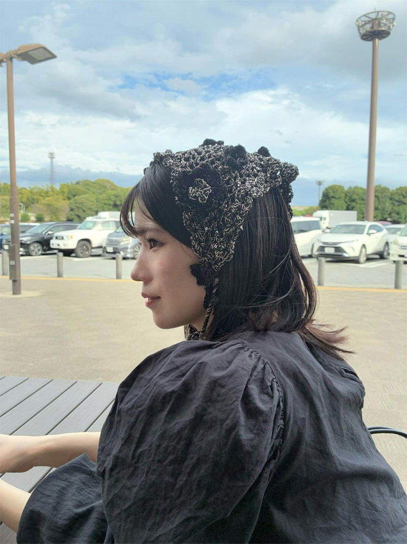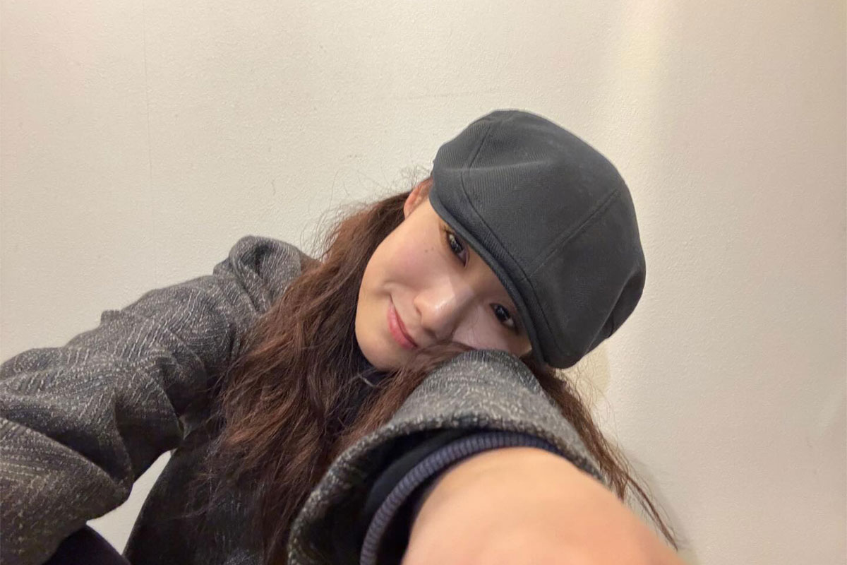 前髪を軽く巻くだけで、帽子とのバランスがぐっと良くなります。顔まわりに動きが出ることで、抜け感のあるスタイリングに。