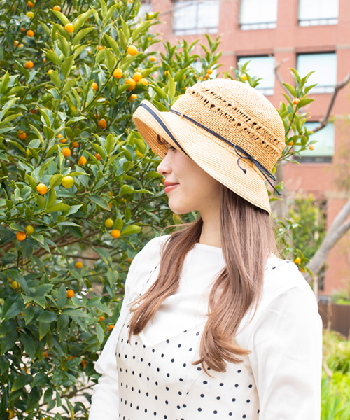 ブレード編み×コマ編みで仕立てた、ウォッシャブル仕様のハット。日差しをブロックしながら蒸れを防ぎ、快適なかぶり心地をキープします。つばの上げ下げで、印象を変えて楽しめるデザインです。