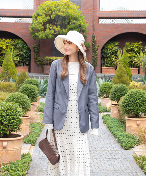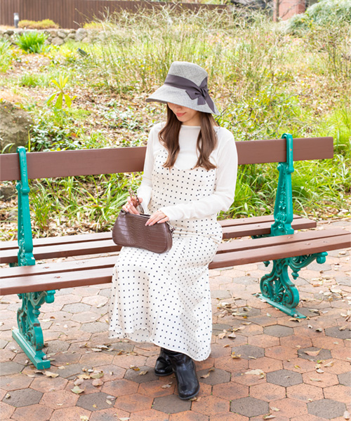 日差し対策に配慮した、計算されたシルエットのハット。約96%のUVカット率を備えた芯地とメッシュの裏地で、夏まで快適に過ごせます。腰に巻いた太幅のグログランリボンが上品な印象のアイテムです。