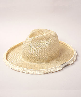 後ろ側に施した「gain momentum」のプリントがポイント。ブリム先のフリンジは季節感を際立てるアクセントに。