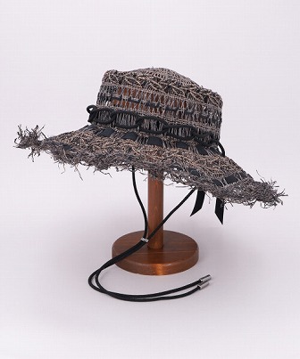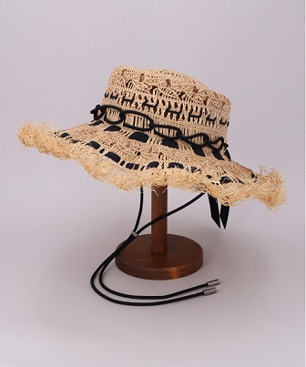 長めのブリムは加工を施し、バサバサと動きのあるシルエットに。あご紐付きなのも嬉しいポイント。