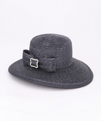 左右を長めに仕立てたブリムラインがエレガントな雰囲気を演出。お顔周りを覆ってくれるので日除けとしてもおすすめ。