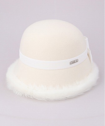ブリム先のフェイクファーと、サテンベルベットリボンがエレガントな雰囲気を醸し出します。CA4LAロゴプレートもさり気ないアクセント。