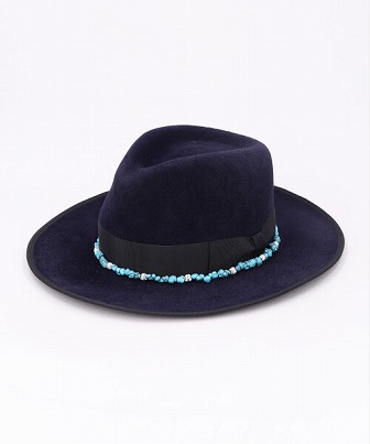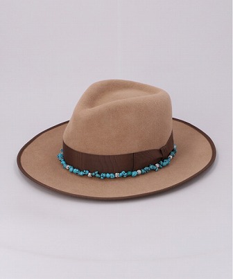 太幅のリボンを巻いたクラシックなデザイン。さらにターコイズを飾り、アクセントをプラスしました。