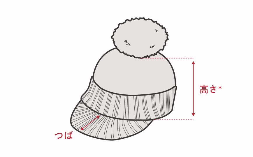 CA4LAオンラインショップでは、つば付きニットのサイズは以下の通り採寸しています。