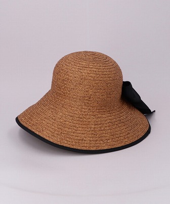 ふんわりとリボンを飾ったバックスタイルが可愛らしいデザイン。ブリム先にはパイピングを施し、アクセントをプラスしました。