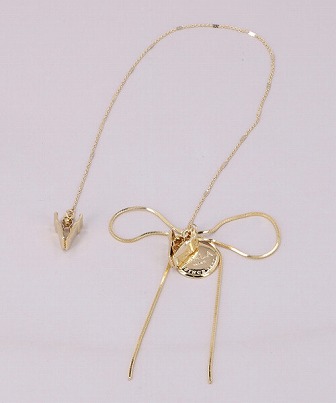 華奢なチェーンが繊細な雰囲気を醸し出します。片方のクリップにはCA4LAのロゴプレートとリボンを飾り付け、アクセントをプラス。帽子の飾りとしてお使いいただくことはもちろん、お洋服に合わせるのもおすすめです。