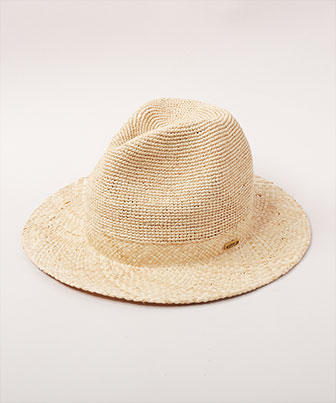 ラフィアで仕立てた中折れハット。