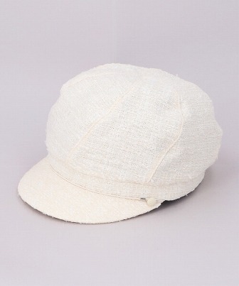 ファンシーツイードを使用。つばにはUVカット芯を貼っているので、紫外線対策としてもおすすめです。