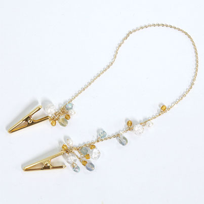 淡い色の重なりが魅力のハットクリップロングバージョン。天然石をベースにパーツを組み合わせた、ワクワク感のあるアイテムに仕上げました。水彩画のような綺麗に流れる色合わせが魅力的。実用性がありながらもファッション性を忘れない出来映えは、まさに帽子の“アクセサリー”。※天然石を使用している為、1つ1つ大きさが異なります。予めご了承ください。