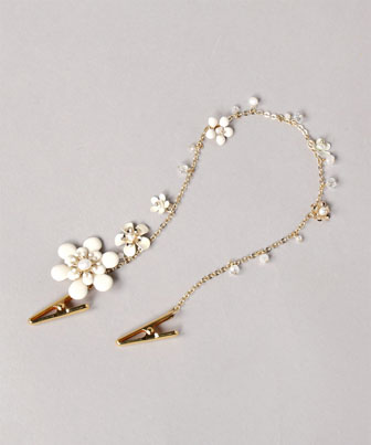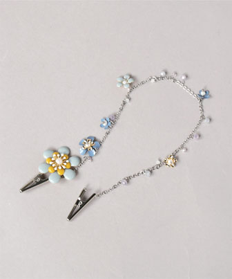 レトロなフラワーパーツを集めたハットクリップ。 少し大きめのお花が、シャラシャラと揺れて可愛い雰囲気です。顔周りを華やかに見せ、揺れ動く輝きが上品さも演出。実用性がありながらもファッション性を忘れない出来映えは、まさに帽子の“アクセサリー”。