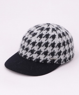 クラウンは千鳥格子、ブリムは無地で切り替えたデザイン。サイドにはプレートを飾り、さり気ないアクセントをプラスしました。