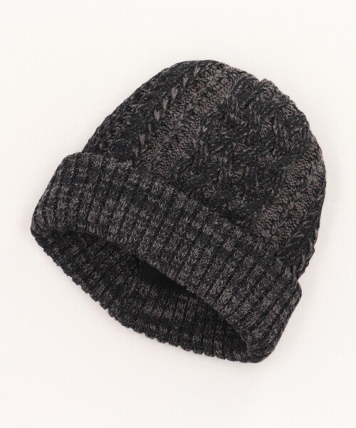 ケーブル編みの折り返しニット。■デザイン異なる2色の糸をミックスして編み上げた、奥行きのある表情がポイント。杢調ならではの濃淡と立体感を表現しました。■シルエット程よい深さでフィット感抜群。ユニセックスで使いやすい、ベーシックなフォルムです。■素材アクリル×ウール素材を使用。伸縮性があり、快適なかぶり心地に仕上げました。■お手入れ方法洗濯不可。汚れにつきましては、帽子が汚れてしまう前の対策として、消臭・抗菌用のスプレーをお勧めしております。※柄の出方は個体差があります。※お手入れ・保管方法はこちら