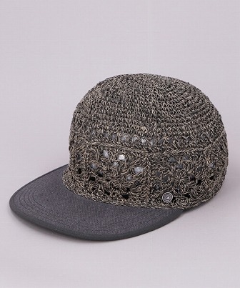手編みで仕立てたベースボールキャップ。