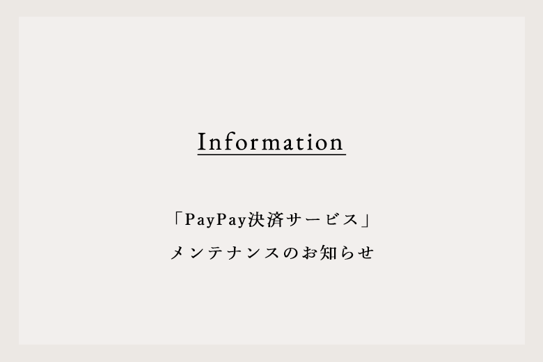 メンテナンス期間中はお支払い方法にてPayPay決済がご利用できなくなります。 お客様にはご不便をおかけいたしますが、何卒ご理解くださいますようお願い申し上げます。
