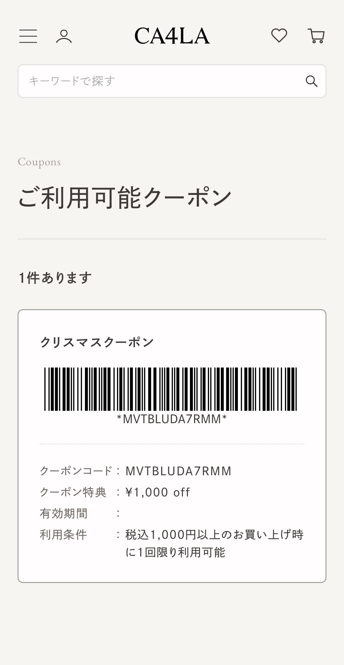 CA4LA MEMBERS のみなさまへ、クリスマスまでの期間限定でご利用いただけるクーポンをご用意しました。新規でご登録いただいたお客様もご利用いただけますので、この機会にぜひご登録ください。