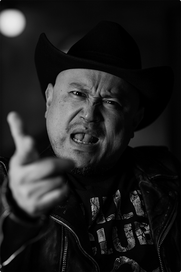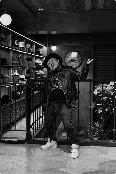 昔からプロレス好きなんですけど、ピン芸人になってキャラの方向を探していたときに、アメリカのJBL(ジョン・ブラッドショー・レイフィールド)というプロレスラーが、いつもスーツにテンガロンをかぶっているのに気づいて。面白いヒールのキャラクターだったので、オレも真似してかぶってみたんです。そのJBLが尊敬していたのが、スタン・ハンセン(プロレスラー)。でもJBLにしても、スタン・ハンセンにしても、憧れていたわけではないかなぁ。キャップとかベレー帽とか、他の帽子が似合わなかっただけなんですよね。
