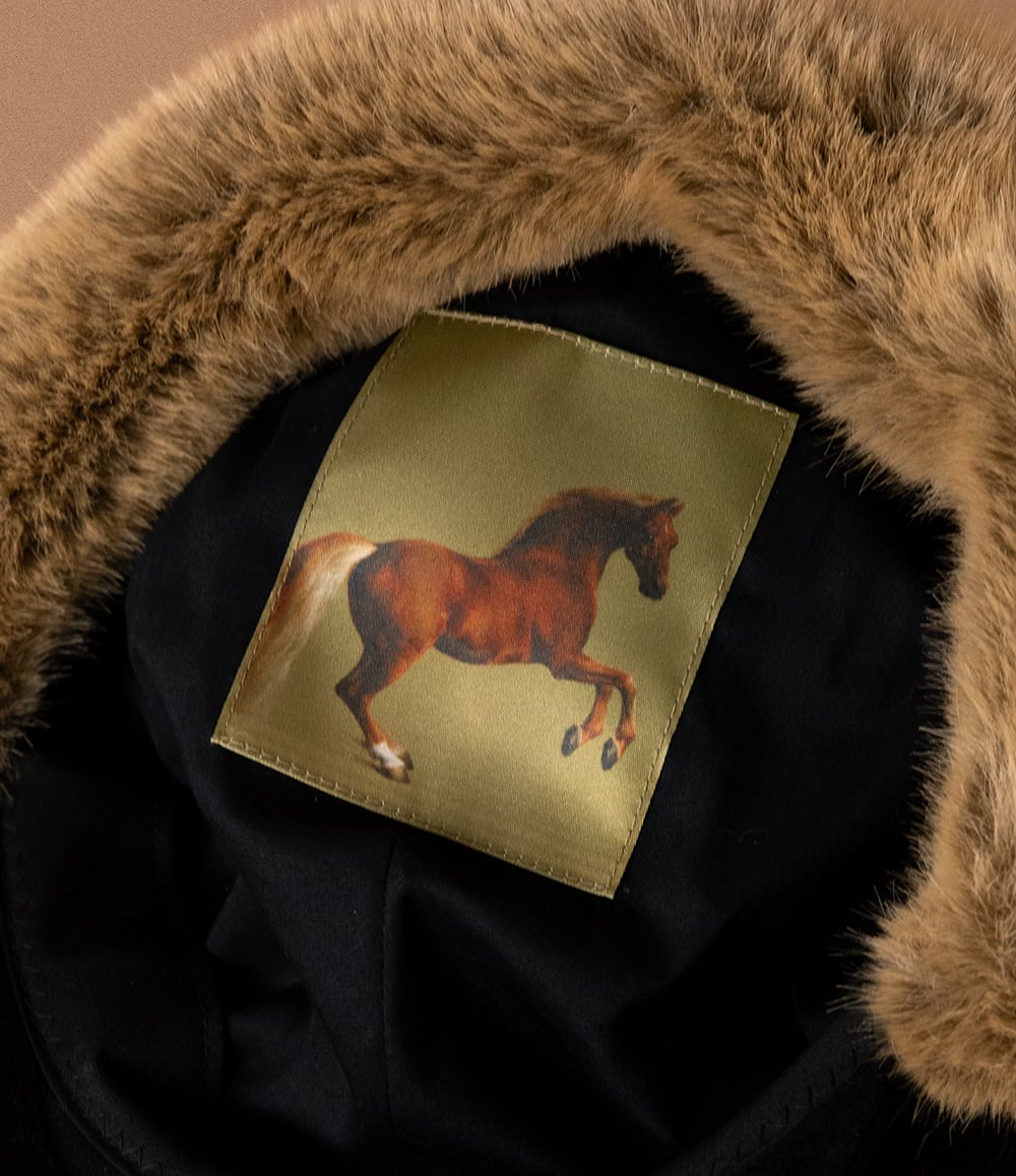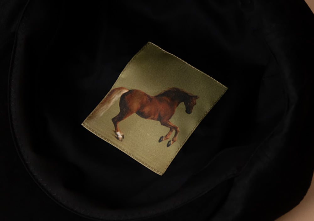 乗り手のいない馬が、抑えきれない自然のエネルギーの体現として描かれている名画『Whistlejacket(ホイッスルジャケット)』から着想を得たコレクション。サラブレッドの毛並みを思わせる素材を厳選し、裏側に縫い付けたサテンのプリントネームがアイコンとして彩りを添えます。